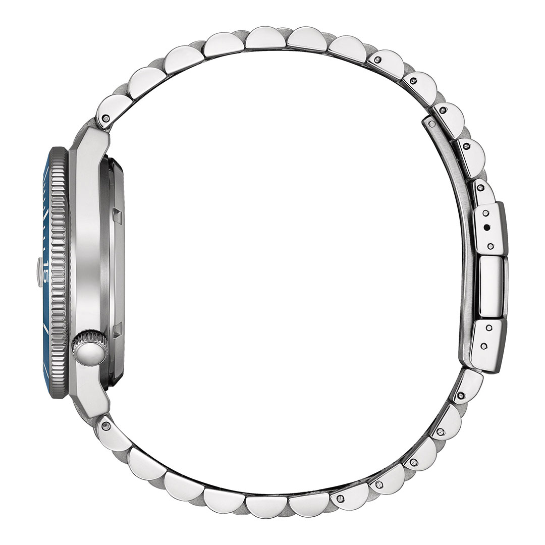 Quadrante blu e cinturino in acciaio